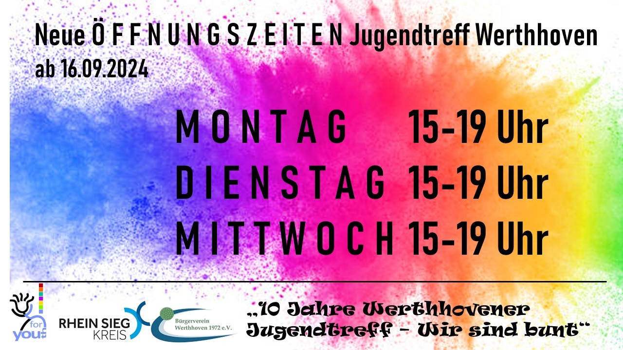 Wachtberg-Werthhoven - Der Bürgerverein Werthhoven betreibt seit 10 Jahren den Jugendtreff in Wachtberg Werthhoven. Es handelt sich um eine Einrichtung der Offenen Kinder- und Jugendarbeit. Dieser Bereich der Sozialarbeit ist dafür da, jungen Menschen im Alter von 6 – 27 Jahren einen Raum zu bieten, …