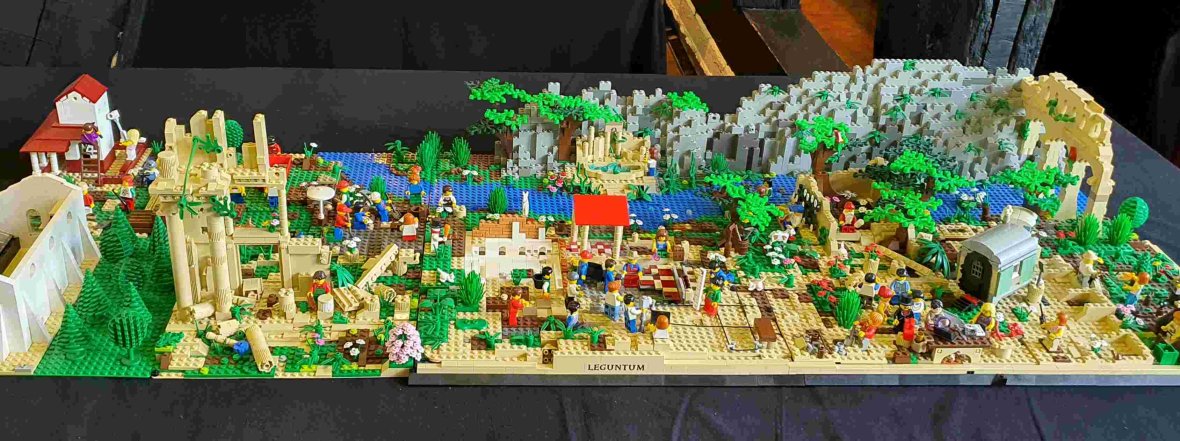 Bemerkenswert das Werk von Elke Vorst „Leguntum“. In einer Bauzeit von circa einem Jahr zauberte sie die Ausgrabung einer (fiktiven) antiken römischen Stadt…eine Unmenge kleiner Steine wurde verarbeitet und, da muss man schon genau hinschauen, mitten in dem antiken Geschehen tauchen immer wieder witzige und so gar nicht passende Figuren auf wie zum Beispiel eine Nikolausfigur oder ein Schneemann mit einer Möhre. Alleine für Leguntum hätte man einen ganzen Tag gebraucht, um alles zu entdecken.