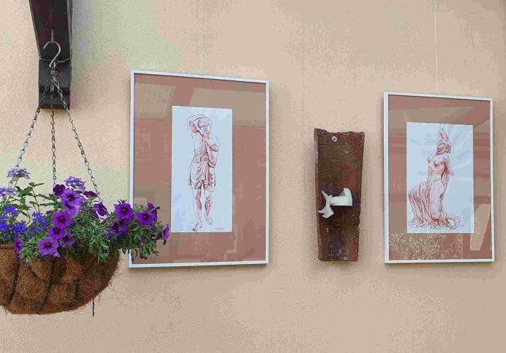 Aber auch klassische Statuen hat er gezeichnet, mit Rötel. Einige solcher Bilder hatte er an der gegenüberliegenden Hauswand aufgehängt.