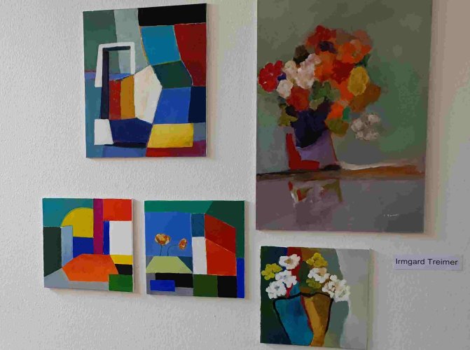 Irmgard Treimer begeisterte mit klaren kräftigen Farben, Grafisches, aber auch Blumen hatte sie so gemalt.
