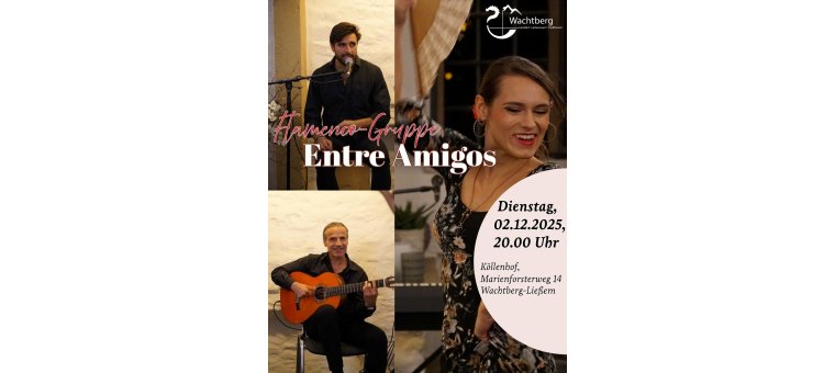 „Entre Amigos" – unter Freunden – das sind der Flamencogitarrist Franco Carmine (Köln), die Tänzerin Indra Sani (Schweden) und der Sänger Gabriel de Jerez (Jerez de la Frontera), die am 02.12.2025 das Wachtberger Publikum in den Süden Spaniens mitnehmen und mit andalusischen Rhythmen, Tanz und Gesang verzaubern werden.