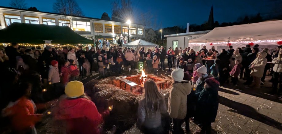 Die Erstklässler der Klassen 1a und 1c aus Villip präsentierten Gedichte, und die Klasse 2a erfreute die Zuschauenden mit einem Lichtertanz um die zentrale Feuerstelle des Adventsmarktes.