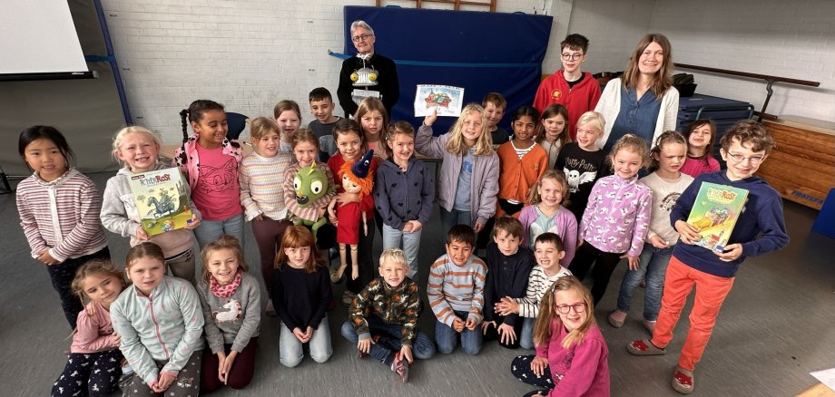 Eingeladen waren die Klassen 1a, 1c, 2a und 2c mit ihren Lehrkräften – und sie wurden nicht enttäuscht. Mit viel Witz, Stimme und Gestik brachte Hilbert seine Puppen Ritter Rost, Burgfräulein Bö und den Drachen Koks, die ihn zu der Lesung begleitet hatten, zum Leben. Die Kinder lauschten gespannt und lachten herzlich über die Abenteuer der beliebten Figuren.