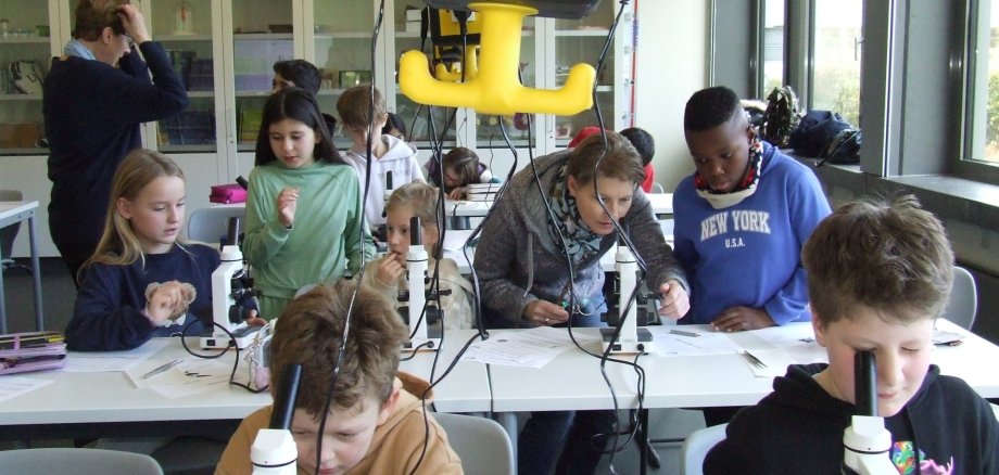 * Biologie: Gemeinsam mit Peter Klein und Antje Ruhnau tauchten die Kinder in die Welt der Spurensuche ein und erhielten erste Einblicke in das Mikroskopieren.