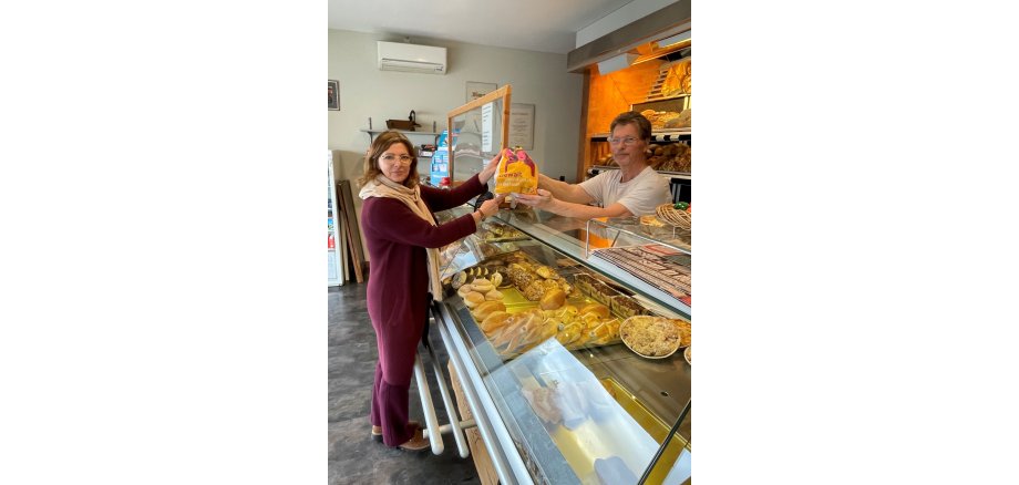 In Wachtberg nahm wie schon im letzten Jahr die Bäckerei Panzer an der gemeinsamen Aktion der Bäckerinnung der Kreishandwerkerschaft Bonn/Rhein-Sieg, des Runden Tisches gegen häusliche Gewalt im Rhein-Sieg-Kreis und der kommunalen Gleichstellungsbeauftragten teil. 2.000 Tüten werden in Niederbachem seit dem 25. November über den Ladentisch gehen. Michael Panzer, der einzige Wachtberger Bäcker, der selbst noch in der Backstube steht, hat sich erneut bei der Handwerkskammer darum beworben. Warum? „Ich finde es gut, so etwas zu unterstützen“, sagt er, „es gibt genug Gewalt in der Welt, da brauchen wir nicht noch mehr.“