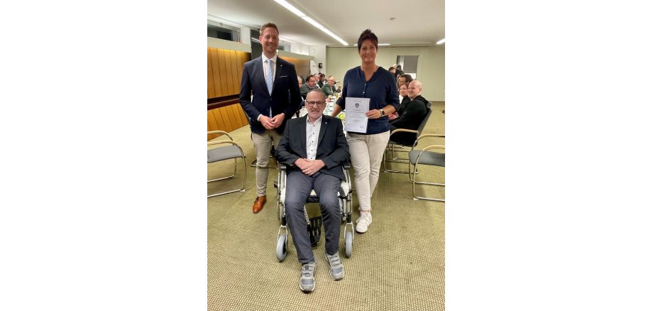 Der Abschluss des beamtenrechtlichen Teils kam Wachtbergs zukünftigen Bürgermeister Swen Christian zu – Herrmanns Vorgänger als Beigeordneter und Leiter des Dezernats Technische Dienste –, der sich zudem bei seinem scheidenden Vorgänger Jörg Schmidt bedankte und das starke Verwaltungsteam lobte, das die Krisen der vergangenen Jahre gut gemeistert habe.