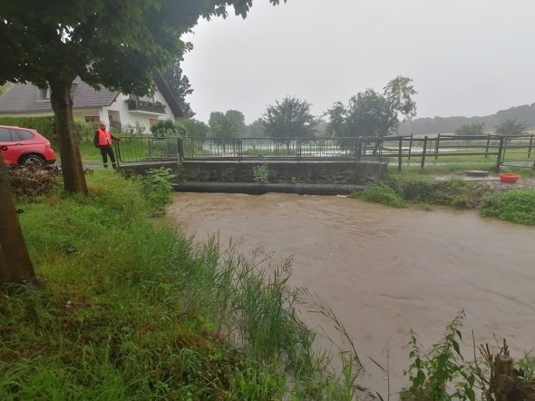 Das Starkregenereignis am 14.07.2021, welches massive Schäden nicht nur im Ahrtal, sondern auch in Nordrhein-Westfalen und hier in den Kommunen Rheinbach, Swisttal und Meckenheim des Rhein-Sieg-Kreises hinterlassen hat, verlief in Wachtberg nicht ganz so extrem wie vorgegangene Ereignisse. Man muss aber deutlich erwähnen, dass es auch hier nicht längerer regnen dürfen, denn unsere Bachläufe, Gräben und Straßen waren bis an die Obergrenzen gefüllt.
