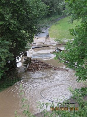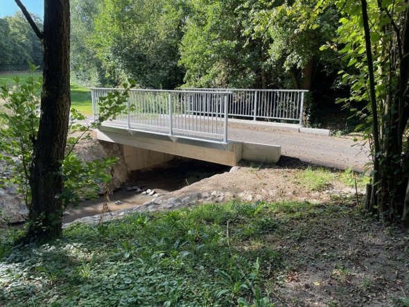 Durch das Starkregenereignis 2010 wurde das Brückenbauwerk erstmals in Oberbachem, am Wirtschaftsweg / Werthhovener Weg in Richtung Grube Laura so stark beschädigt, dass es dauerhaft erneuert werden musste.